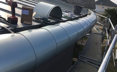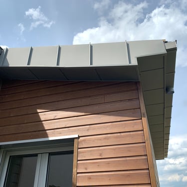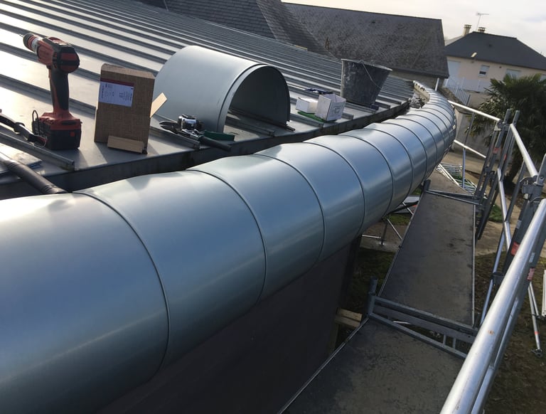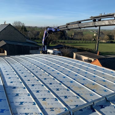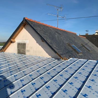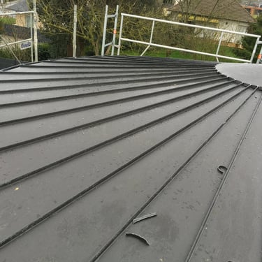 Modernisation de toiture : remplacement de la couverture existante par du zinc pour un rendu contemporain et durable.