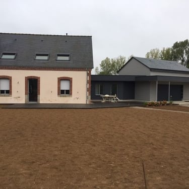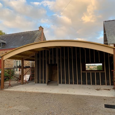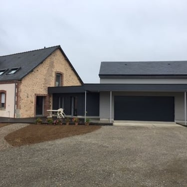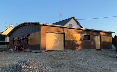 Extension à ossature bois : toiture, isolation, plaques de plâtre (placo), menuiseries et finitions.